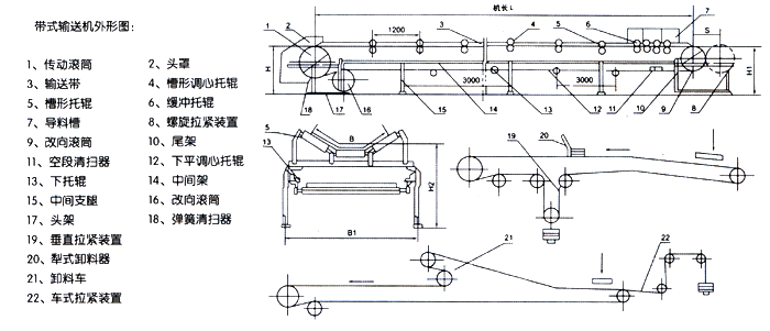 托輥是用無縫鋼管制成,類型有:槽形、平行,調(diào)心,緩沖四種,拉緊裝置:螺旋式拉緊裝置適用于長(zhǎng)度較短(小于100m),行程有500m、800m、100mm三種;垂直重錘拉緊裝置,可隨著張力變化靠重力自動(dòng)補(bǔ)償輸送帶的伸長(zhǎng);重錘車式拉緊裝置適于距離較長(zhǎng),功率較大的輸送機(jī),其拉緊行程有2,3,4m三檔,固定絞車?yán)o裝置用于長(zhǎng)行程大拉緊力(30-150KN),長(zhǎng)距離,大運(yùn)量的帶式輸送機(jī),最大拉緊行程可達(dá)16m。